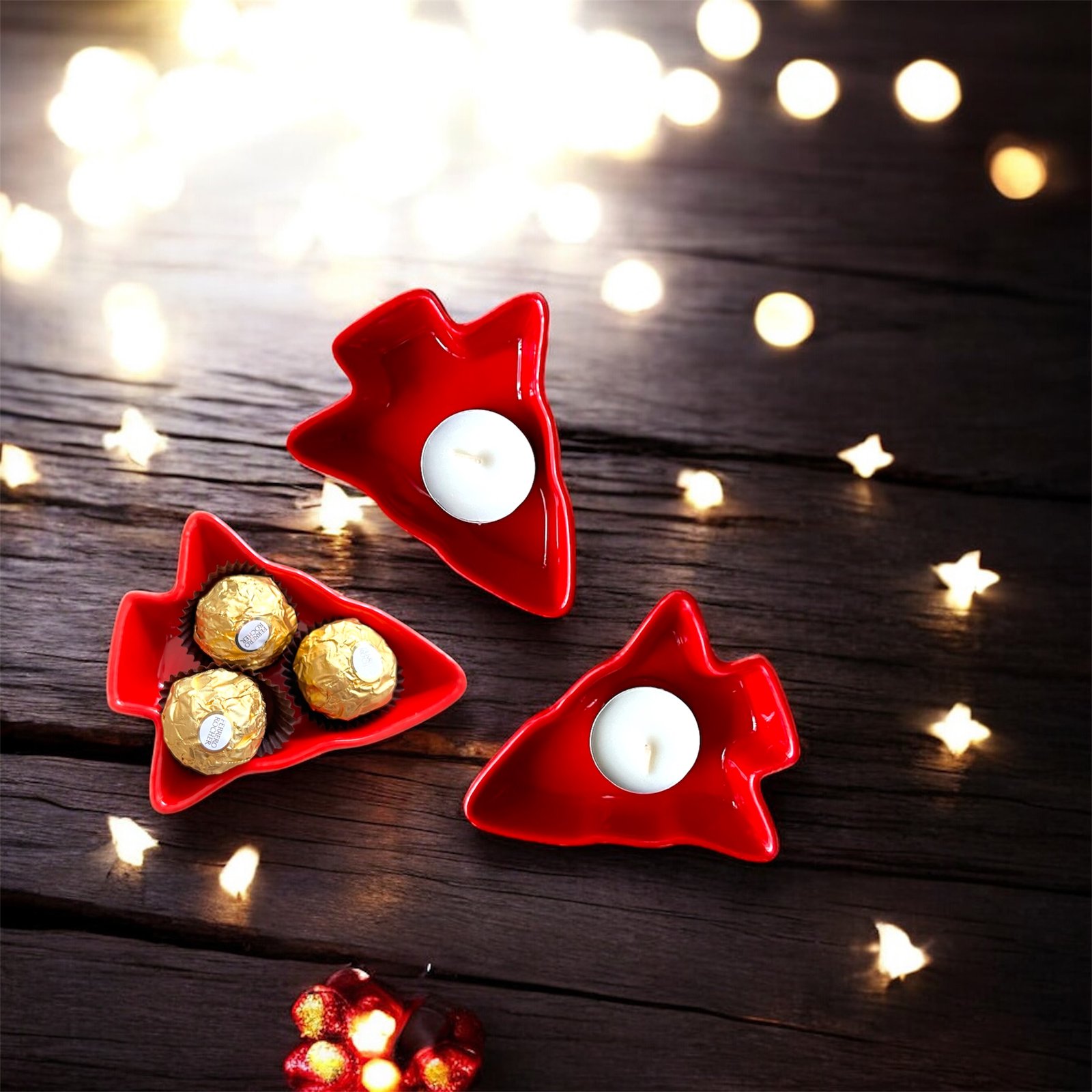 🎄 Lot de 3 Mini Assiettes Sapin Rouges + 3 Bougies Chauffe-Plat🎄 Lot de 3 Mini Assiettes Sapin Rouges + 3 Bougies Chauffe-Plat