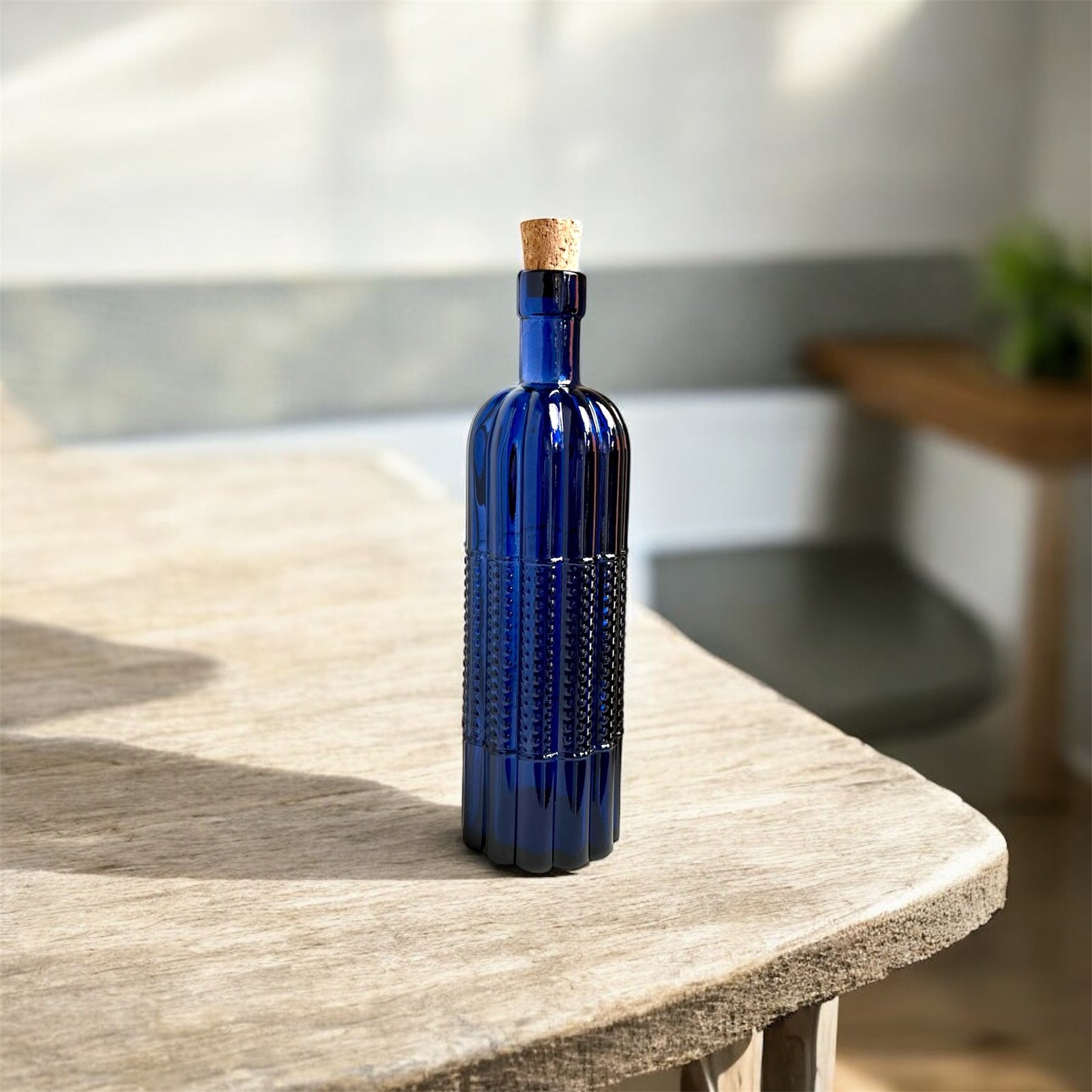 Bouteille en verre bleu saphir liège 500 ml