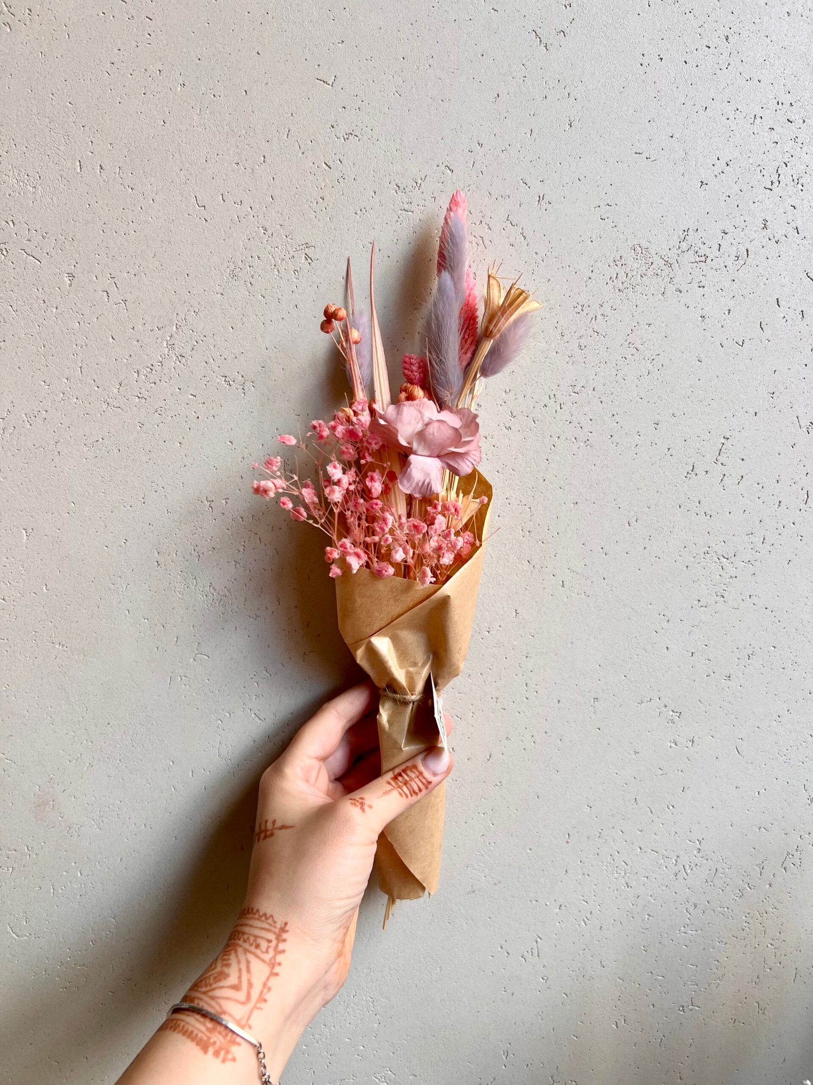 Bouquet de fleurs séchées aux nuances rosé  pensé pour réchauffer votre intérieur avec élégance.