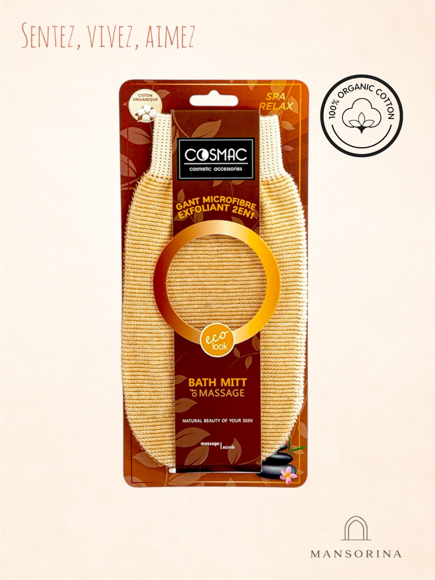 Gant de Bain Double Face Gommage et Rinçage COSMAC – 2 en 1 – Exfoliation douce – Nettoyage efficace