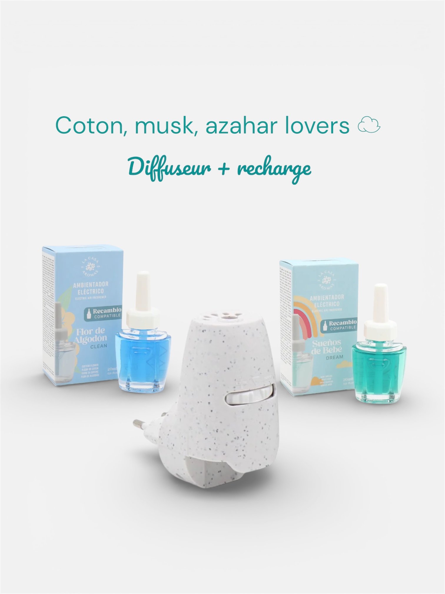 La Casa de los Aromas – Pack Promo Appareil Diffuseur Électrique + Recharge Fleur de coton & rêve de bébéLa Casa de los Aromas – Pack Promo Appareil Diffuseur Électrique + Recharge Fleur de coton & rêve de bébé