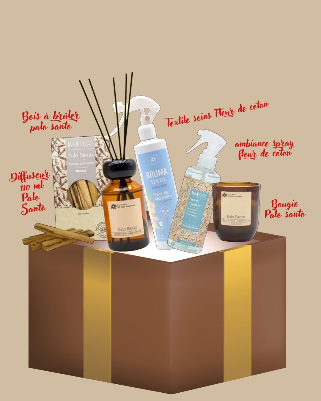 Entre la profondeur boisée et spirituelle du palo santo et la douceur réconfortante de la fleur de coton, cette box transforme chaque intérieur en un véritable cocon de bien-être.
