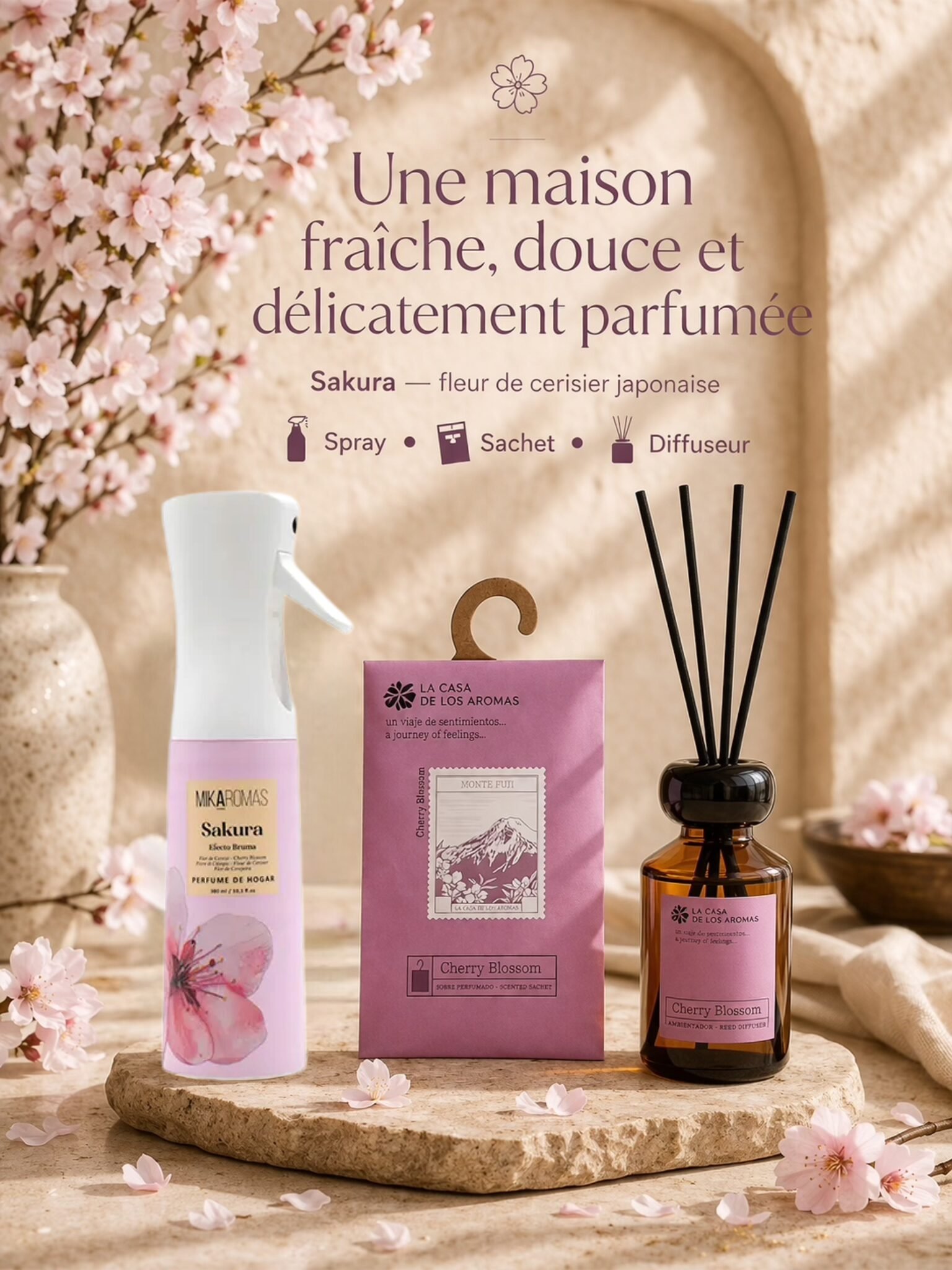 Cet ensemble a été pensé pour celles et ceux qui aiment que leur maison respire la fraîcheur et l’élégance, sans effort. Grâce à la délicatesse du parfum Fleur de Cerisier, transformez chaque pièce en un espace de bien-être et de détente.